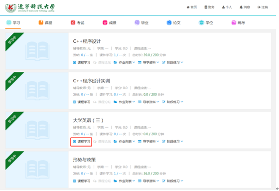 1、登錄后,進(jìn)入主頁(yè)面,找到學(xué)習(xí),然后選擇課程學(xué)習(xí)。
