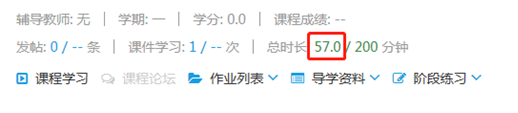 4、學(xué)習(xí)完成后,在主頁面會(huì)顯示學(xué)習(xí)時(shí)長。每科學(xué)習(xí)200分鐘,課件學(xué)習(xí)次數(shù)大于5次即可。